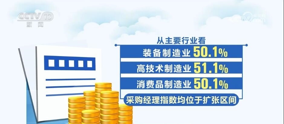 1月份,21個(gè)制造業(yè)行業(yè)中有13個(gè)行業(yè)采購(gòu)經(jīng)理指數(shù)環(huán)比上升,1個(gè)行業(yè)環(huán)比持平。從主要行業(yè)看,裝備制造業(yè)50.1%、高技術(shù)制造業(yè)51.1%、消費(fèi)品制造業(yè)50.1%,采購(gòu)經(jīng)理指數(shù)均位于擴(kuò)張區(qū)間。