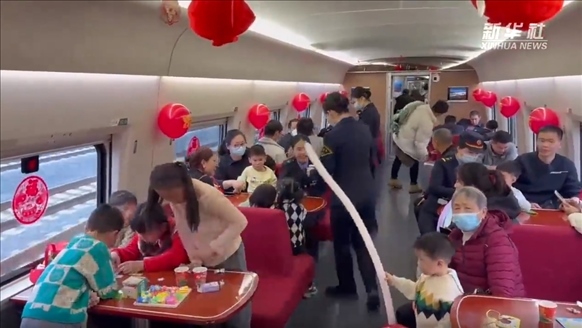 ·今年春運(yùn)期間,自廈門始發(fā)開往北京、上海、南京等方向的部分16節(jié)車廂“長(zhǎng)編組”高鐵列車開設(shè)了“遛娃艙”,供帶娃家庭使用。
