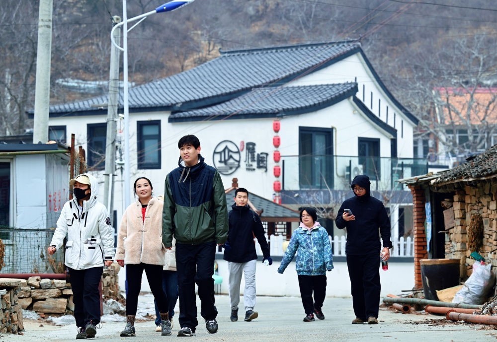 2024年1月30日,游客在天津市薊州區(qū)下?tīng)I(yíng)鎮(zhèn)前干澗村游玩。新華社記者 趙子碩 攝