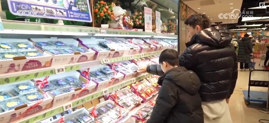 除了蘋果,各類葡萄、柑橘、車?yán)遄印⒉葺?、藍(lán)莓、菠蘿、榴蓮等水果也大量上市。僅記者采訪的這家生鮮超市,新奇特品種相比2023年,就有5%—10%的增長(zhǎng),春節(jié)前更是有100多款水果在店內(nèi)銷售,豐富了百姓的“果盤子”。