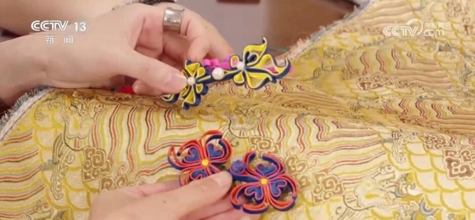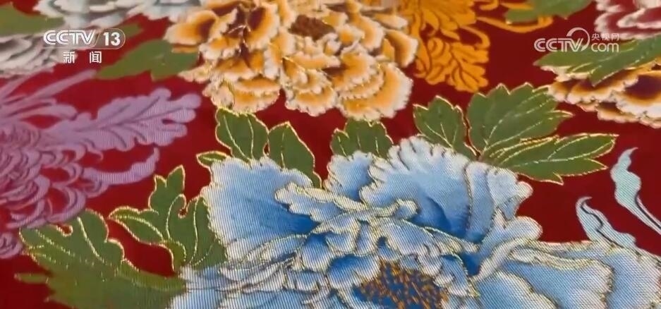 瑞蚨祥中式服裝手工制作技藝傳承人 汪超:這個(gè)就是機(jī)器(制作)的,你會(huì)看到它比較硬,比較板式一點(diǎn)。您看咱們手工的感覺就很軟,而且每一朵花像有生命力一樣。最不一樣看背面,它要不停地?fù)Q線,不停地去計(jì)算,它哪該換線,哪該換色去織造,所以這也是機(jī)器織造物沒有辦法替代的很關(guān)鍵的點(diǎn)。
