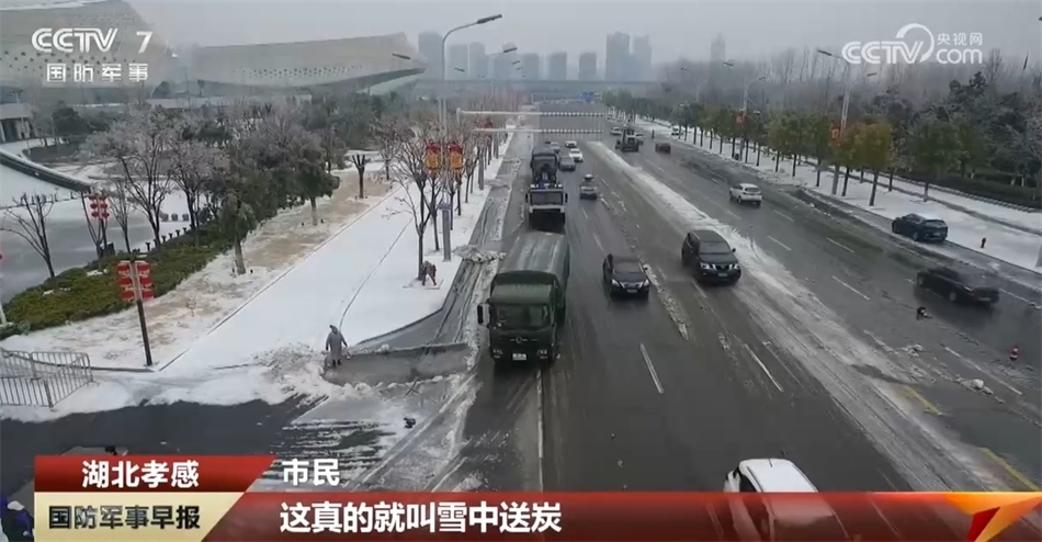 央視網(wǎng)消息:受連日強(qiáng)冷空氣影響,中部地區(qū)出現(xiàn)大范圍寒潮,湖北省孝感市因雨雪天氣,導(dǎo)致道路結(jié)冰濕滑,城市道路交通嚴(yán)重受阻。武警孝感支隊(duì)緊急出動80多名官兵,支援地方破冰除雪,為受困車輛提供幫助,確保城市重點(diǎn)路段和主干道暢通。