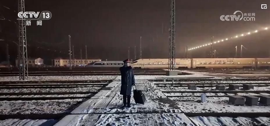 趁著茫茫夜色,動車組司機(jī)張洋從動車所出勤,執(zhí)行當(dāng)天高鐵第一列“熱滑除冰車”的執(zhí)勤任務(wù)。