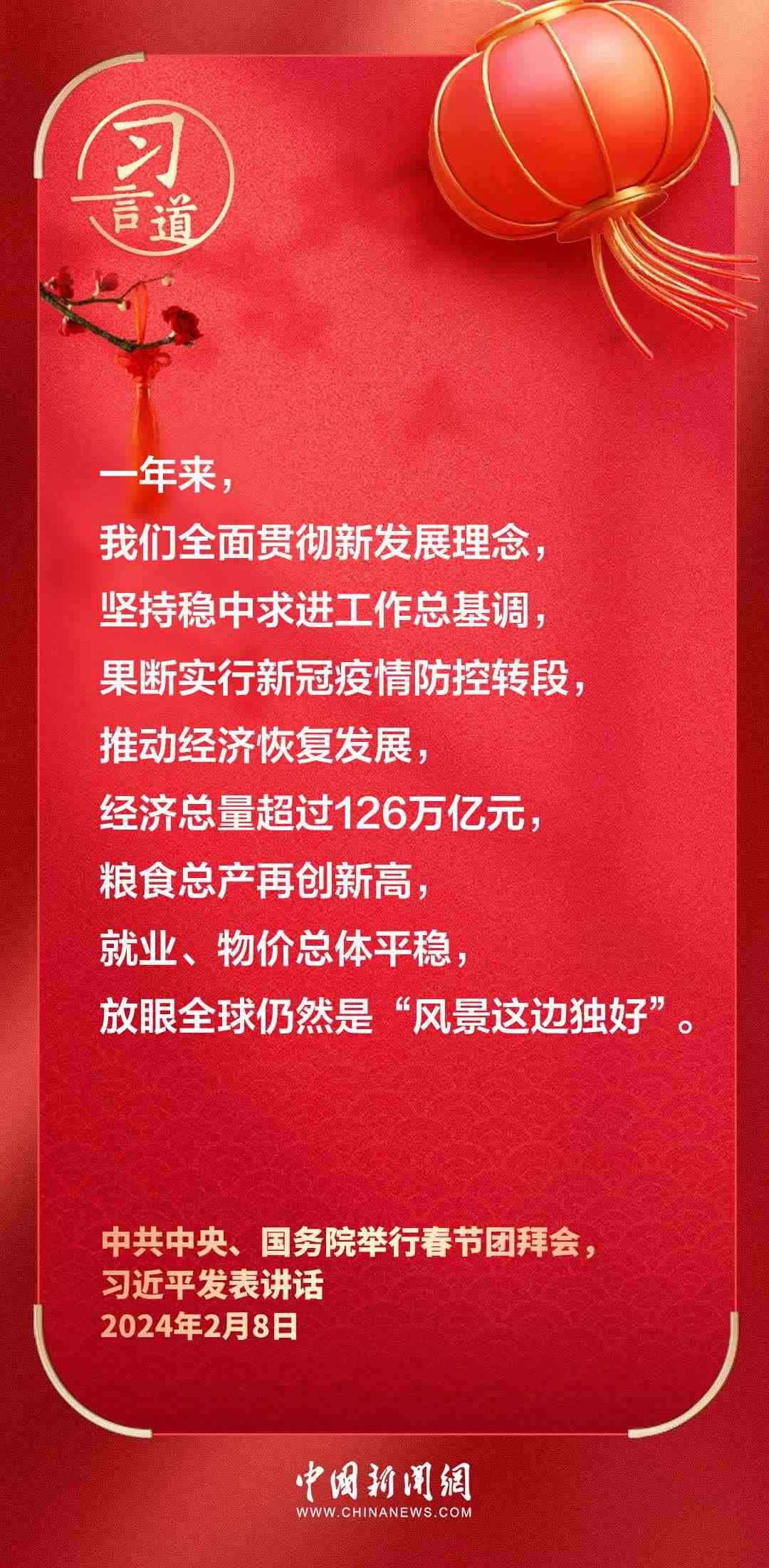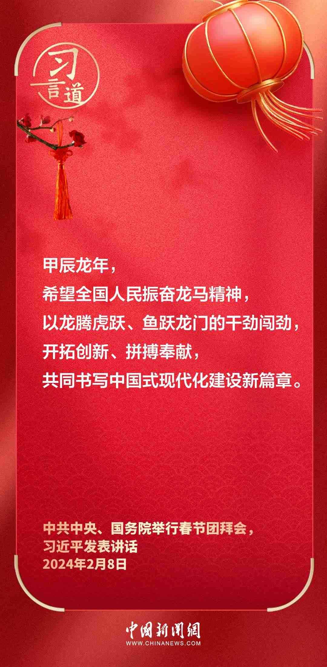 中共中央、國(guó)務(wù)院8日上午在人民大會(huì)堂舉行2024年春節(jié)團(tuán)拜會(huì)。中共中央總書記、國(guó)家主席、中央軍委主席習(xí)近平發(fā)表講話——