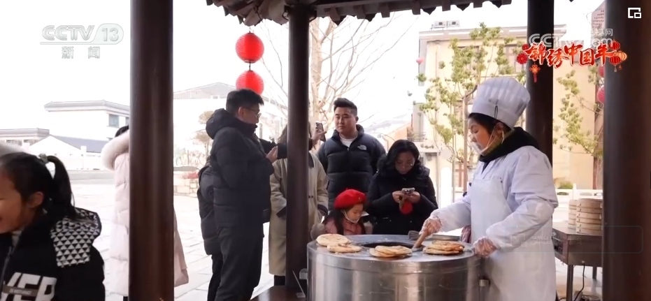 老式燒餅色澤金黃、香酥可口、風(fēng)味獨(dú)特,裹滿糖衣的糖葫蘆一口一個(gè)香甜美味,還有非遺美食合成昌的糖麻花,傳統(tǒng)美食琳瑯滿目,年味兒十足,吸引了不少市民游客進(jìn)店品嘗購買。剛?cè)胍梗垷酎c(diǎn)亮珠溪古鎮(zhèn),光影畫卷流光溢彩,煙花舞龍震撼登場(chǎng),情景劇精彩上演。