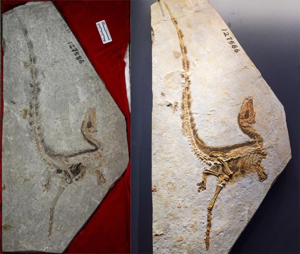 ·這只“明星恐龍”生活在距今1.25億年前,化石于1995年在我國遼寧被發(fā)現(xiàn)。中華龍鳥最令人震驚的是化石上保存完好的“羽毛”。這是人類第一次發(fā)現(xiàn)明確的帶羽毛的恐龍化石,最早的研究者們認(rèn)為這可能是一種長相酷似恐龍的“鳥”,因此給它起名“原始中華龍鳥”。