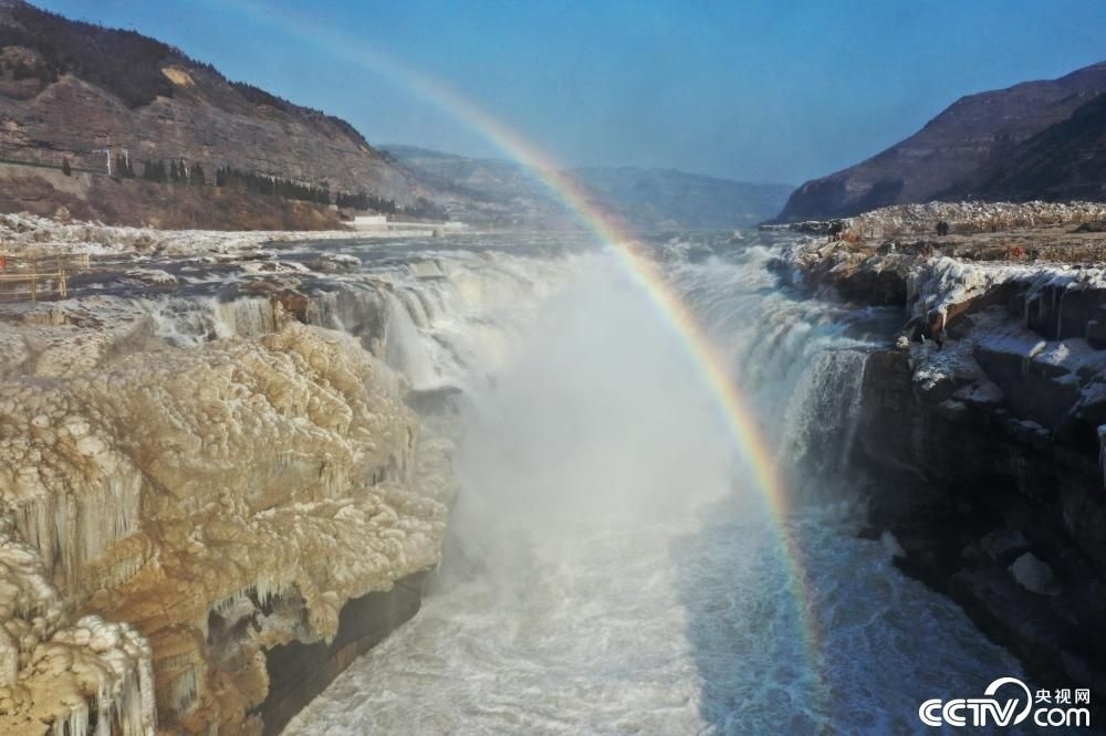 近日,受氣溫回暖影響,位于山西省吉縣和陜西省宜川縣交界處的黃河壺口瀑布冰消河開,再現(xiàn)奔騰咆哮的壯美景觀。