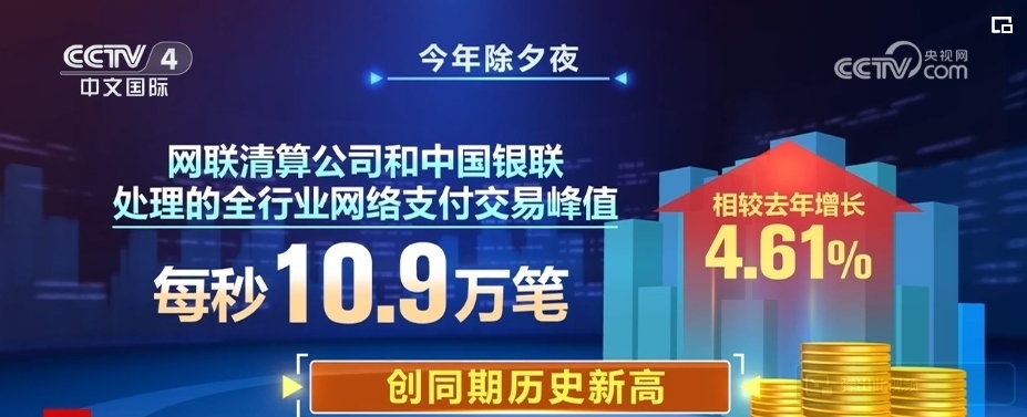 中國人民銀行最新數(shù)據(jù)顯示,2024年除夕夜,伴隨著零點鐘聲的敲響,網(wǎng)聯(lián)清算公司和中國銀聯(lián)處理的全行業(yè)網(wǎng)絡(luò)支付交易達到峰值,最高并發(fā)量為每秒10.9萬筆,相較2023年增長4.61%,創(chuàng)同期歷史新高。
