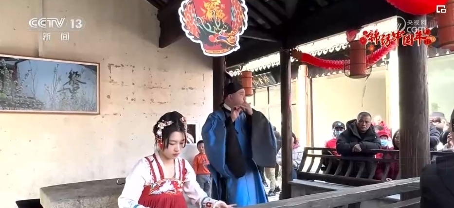 春節(jié)期間,伴隨著陣陣《茉莉花》的悠揚樂聲,在江南水鄉(xiāng)黎里古鎮(zhèn)的迎恩坊,游客市民欣賞演奏團隊奏響的新年歡樂樂章。石板道兩旁都換上了喜慶的紅色裝飾,糖畫攤、丟圈兒游戲的攤位前擠滿了躍躍欲試的人群。這幾天,黎里古鎮(zhèn)已經迎來超過5萬名游客,較2023年同期翻了兩番。