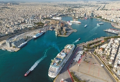 中國企業(yè)參與投資運(yùn)營的希臘比雷埃夫斯港渡輪碼頭,游輪靠岸。在中企助力下,比雷埃夫斯港發(fā)展成為歐洲十大集裝箱港口之一。尼古拉斯·格洛戈維蒂斯攝