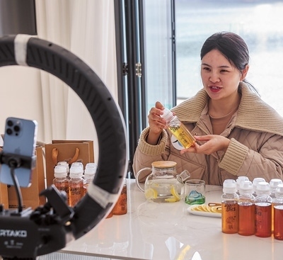 浙江省杭州市淳安縣一家民宿內(nèi),主播在進(jìn)行“淳蜜共富”主題網(wǎng)絡(luò)直播。作為“高質(zhì)量發(fā)展建設(shè)共同富裕示范區(qū)”,浙江推出各種政策促進(jìn)城鄉(xiāng)均衡發(fā)展。新華社記者 徐 昱攝