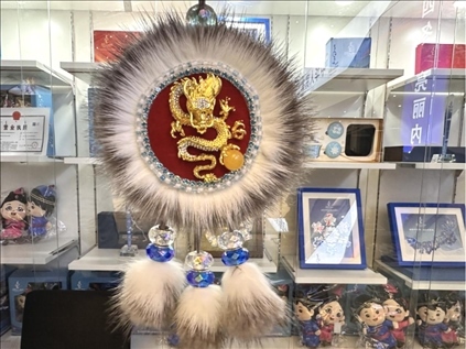 在“十四冬”的主媒體中心,多個(gè)玻璃展柜里的漢代陶罐、北魏陶俑、清代簪花木碗等文物,記錄并展現(xiàn)了呼倫貝爾民族交融史。此外,精美的太陽(yáng)花手工藝品、皮雕畫作、樺樹皮工藝品等非遺作品也吸引了許多人的目光。