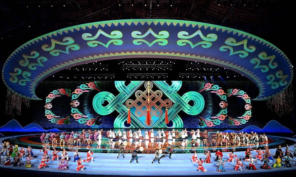 在開幕式上演唱《新的起點(diǎn)》的歌手傲日其楞說(shuō):“歌詞和旋律中很多細(xì)節(jié)都在詮釋民族團(tuán)結(jié)和祖國(guó)昌盛,也通過(guò)強(qiáng)勁的旋律為‘十四冬’加油助陣?!睒?lè)隊(duì)安達(dá)組合表示,他們演唱的歌曲采用了長(zhǎng)調(diào)和呼麥的唱法,加上有力量感的編曲,來(lái)表現(xiàn)競(jìng)技體育奮勇向前的精神,同時(shí)通過(guò)女聲吟唱和柔美的旋律來(lái)表現(xiàn)各族人民團(tuán)結(jié)友愛(ài)、和諧共存的美好畫卷。