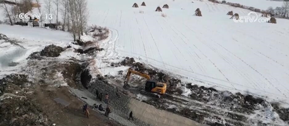 在七臺(tái)河市勃利縣忠義村的高標(biāo)準(zhǔn)農(nóng)田建設(shè)現(xiàn)場(chǎng),施工人員正在溝底進(jìn)行綁扎石籠、填筑碎石等工作。