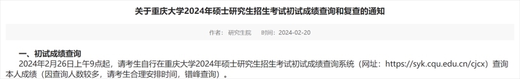 重慶大學(xué)考研初試成績(jī)