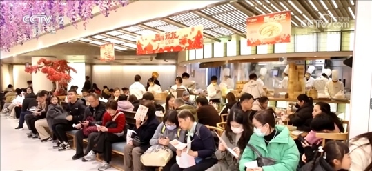 大數(shù)據(jù)顯示,正月初一到初十,全國(guó)重點(diǎn)商圈客流量達(dá)到8010萬(wàn)人次,較2023年同期增長(zhǎng)81%。涌動(dòng)的人潮推升住宿餐飲消費(fèi)。國(guó)家稅務(wù)總局增值稅發(fā)票數(shù)據(jù)顯示,整個(gè)春節(jié)假期,住宿服務(wù)日均銷售收入同比增長(zhǎng)25.4%,餐飲服務(wù)日均銷售收入同比增長(zhǎng)31.5%。在江蘇南京,多家美食餐飲“南京首店”引來大批消費(fèi)者嘗鮮。