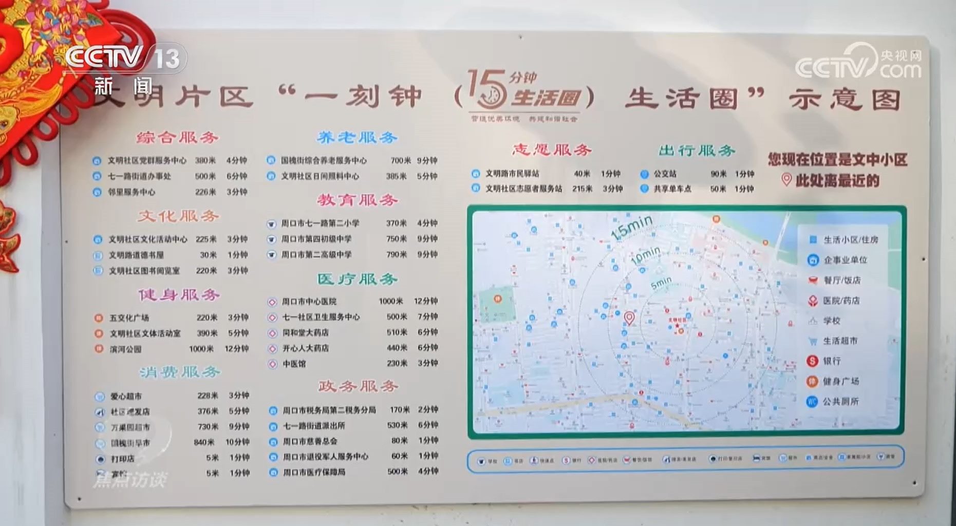 央視網(wǎng)消息(焦點(diǎn)訪談):走出家門,在步行一刻鐘的范圍內(nèi)可以做些什么?河南周口市川匯區(qū)文明片區(qū)的15分鐘生活圈地圖上可以看到百姓基本生活所需幾乎全部覆蓋。河南省周口市是農(nóng)業(yè)大市、人口大市,長(zhǎng)期以來,這里城市化水平比較低,城市基礎(chǔ)設(shè)施和公共服務(wù)設(shè)施建設(shè)歷史欠賬多。川匯區(qū)作為城市的老舊小區(qū),遺留問題尤其多。2023年,川匯區(qū)在改造老舊小區(qū)的同時(shí),著力打造15分鐘便民生活圈。經(jīng)過一系列的措施,現(xiàn)在居民的生活怎樣了呢?