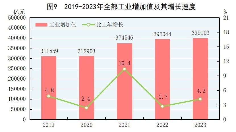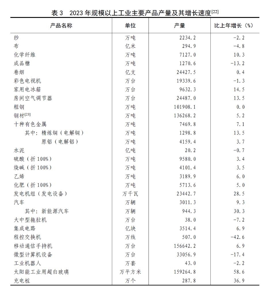 [11]由于統(tǒng)計(jì)調(diào)查制度規(guī)定的調(diào)查范圍變動(dòng)、統(tǒng)計(jì)執(zhí)法、剔除重復(fù)數(shù)據(jù)等因素,2023年規(guī)模以上工業(yè)相關(guān)指標(biāo)增速及變化按可比口徑計(jì)算。