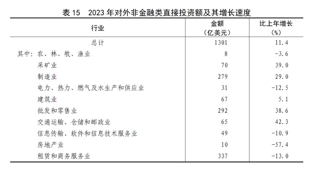 全年對(duì)外非金融類直接投資額9170億元,比上年增長(zhǎng)16.7%,折1301億美元,增長(zhǎng)11.4%。其中,對(duì)共建“一帶一路”國(guó)家非金融類直接投資額2241億元,增長(zhǎng)28.4%,折318億美元,增長(zhǎng)22.6%。