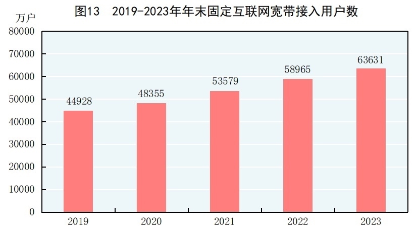 [33]100M速率及以上的寬帶接入用戶是指報(bào)告期末下行速率大于或等于100Mbit/s的寬帶接入用戶。