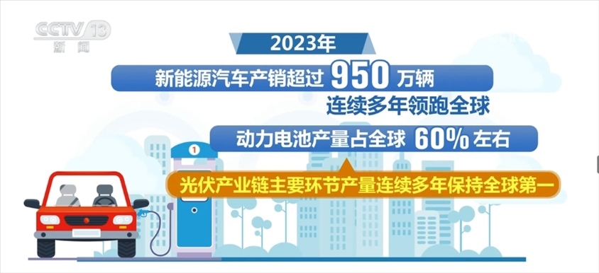 2023年,我國高技術制造業(yè)、裝備制造業(yè)增加值占規(guī)模以上工業(yè)增加值比重分別達到15.7%和33.6%。新能源汽車產(chǎn)銷超過950萬輛,連續(xù)多年領跑全球,動力電池產(chǎn)量占全球60%左右,光伏產(chǎn)業(yè)鏈主要環(huán)節(jié)產(chǎn)量連續(xù)多年保持全球第一。
