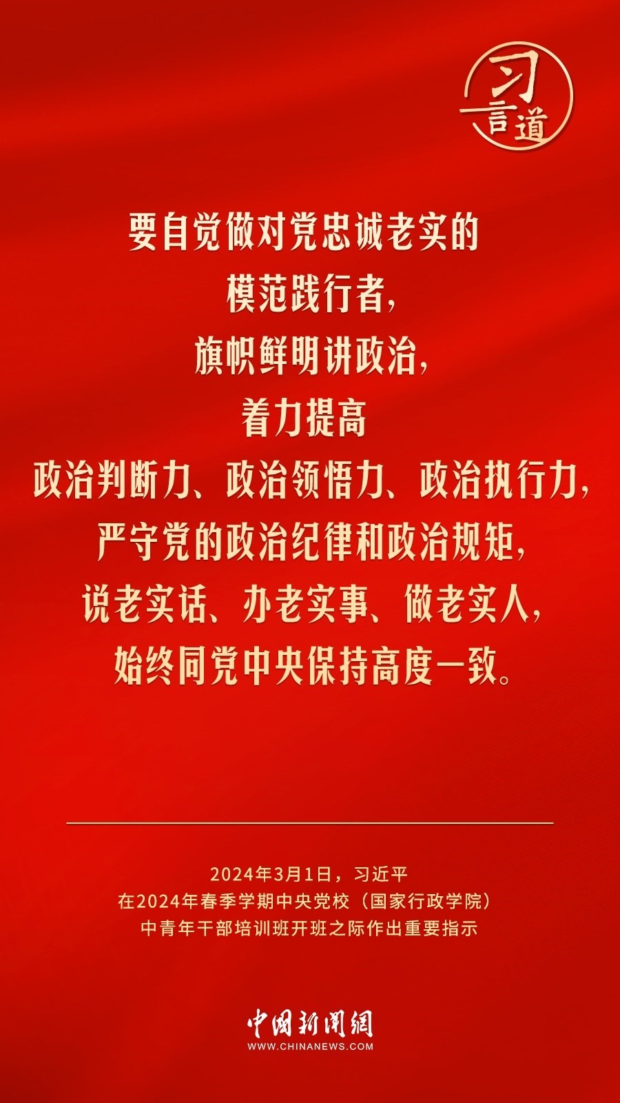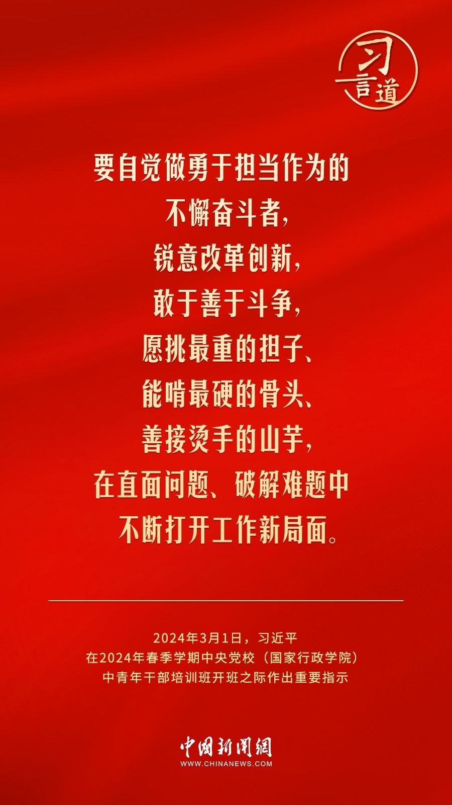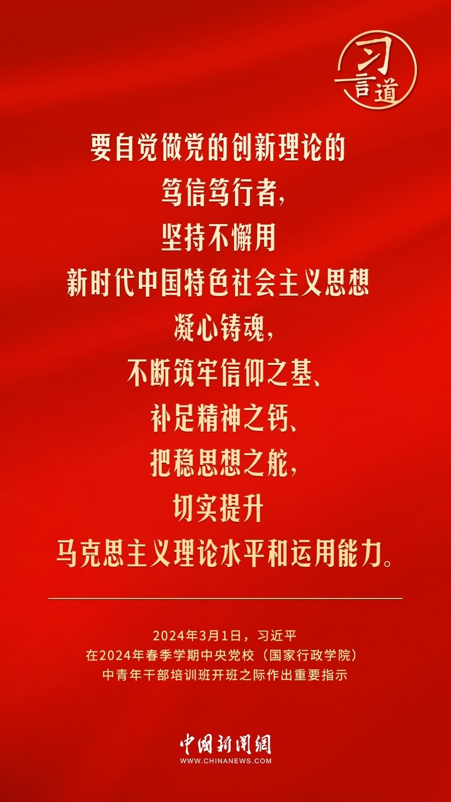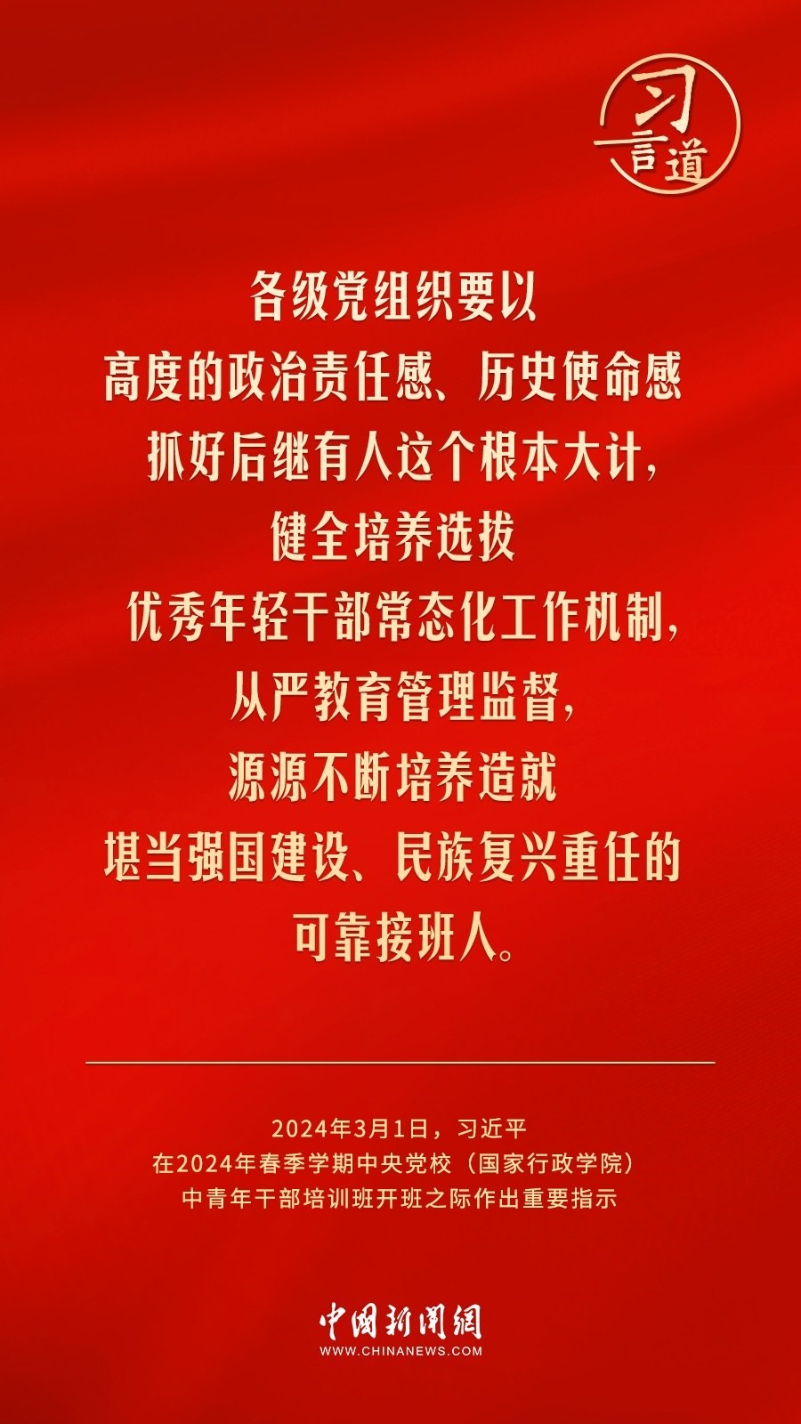 2024年春季學(xué)期中央黨校(國家行政學(xué)院)中青年干部培訓(xùn)班3月1日上午在中央黨校開班。中共中央總書記、國家主席、中央軍委主席習(xí)近平作出重要指示,他強調(diào)——