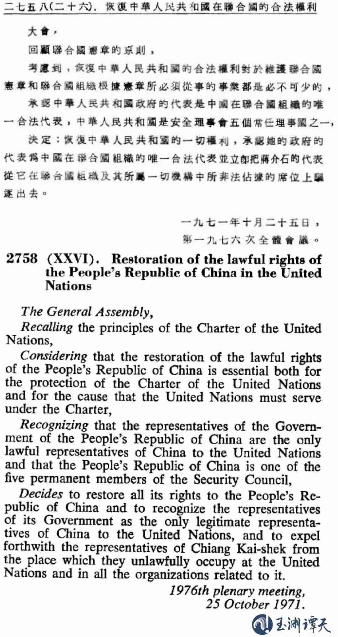 ||聯(lián)大第2758號決議中、英文版