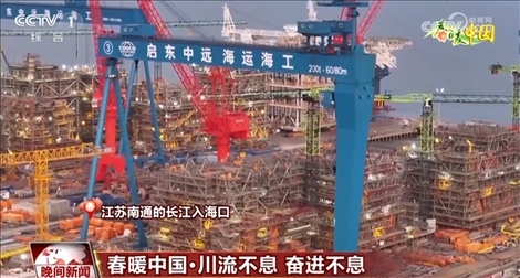 在江蘇南通的長江入海口,一個個造型各異的“巨無霸”讓人震撼。眼前的這艘海上浮式生產(chǎn)儲油輪已經(jīng)進入最后的模塊吊裝施工階段。與此同時,自升式風(fēng)電安裝船、全球最大集裝箱船等重點高端產(chǎn)品不斷取得突破。長江入??谑墙K點也是起點,所謂突破就是將終點當(dāng)成起點,不停出發(fā)。