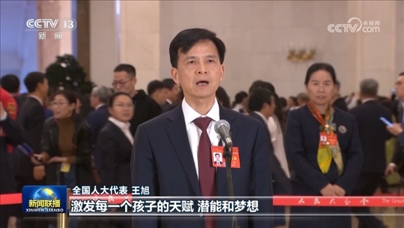 來自湖南長沙雅禮中學的全國人大代表王旭,表示教育是培育希望的事業(yè),讓孩子今天的興趣愛好變?yōu)槊魈烊松l(fā)展的優(yōu)勢。