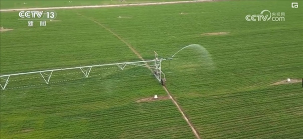 根據(jù)農(nóng)業(yè)專(zhuān)家的精準(zhǔn)測(cè)算和調(diào)度,園區(qū)工作人員啟動(dòng)了大型指針式噴灌機(jī)。