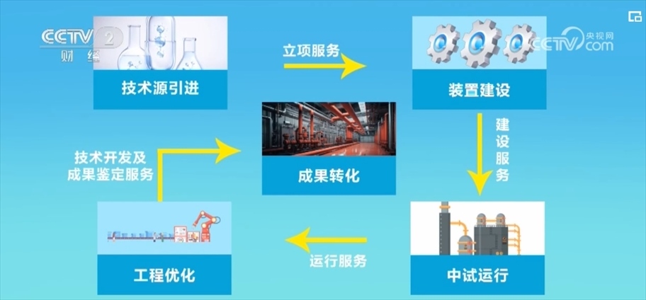 從技術(shù)源引進(jìn)、裝置建設(shè)、中試運(yùn)行、工程優(yōu)化到成果轉(zhuǎn)化等5個關(guān)鍵節(jié)點(diǎn),為中試項(xiàng)目提供包含立項(xiàng)、建設(shè)、運(yùn)行以及技術(shù)開發(fā)、成果鑒定等24項(xiàng)專業(yè)服務(wù)。