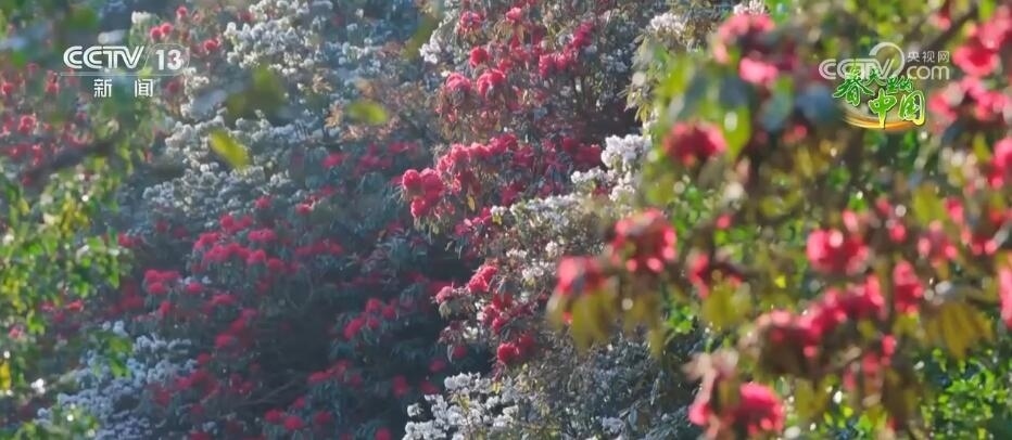 初春時節(jié),百花爭艷?,F(xiàn)在,我們看到的是云南楚雄州武定縣的萬畝野生馬纓花。海拔2600多米的崇山峻嶺間,紅黃白粉相間搭配,掩映在翠綠的叢林之中;古道旁,牛羊成群,峰巒疊翠,迷人的春景生機盎然,令人心曠神怡。歷史上,這片區(qū)域曾經(jīng)是貿(mào)易往來的古驛道,傳承延續(xù)了上千年的彝族羅婺文化,馬纓花更是當?shù)匾妥迦罕姷募橹畼?。春風送暖,花期可持續(xù)到3月底。