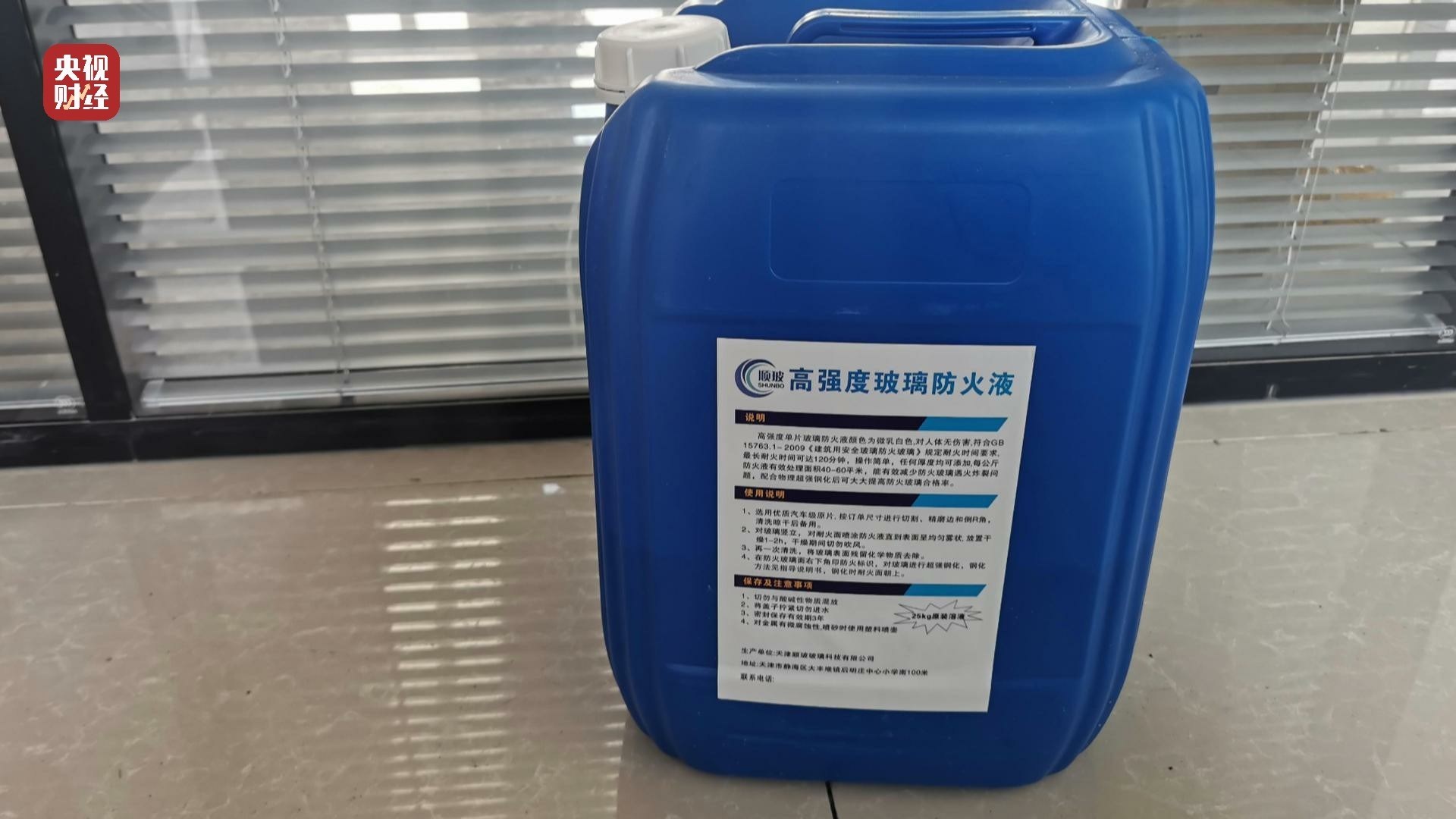 按照知情人的指點,記者來到位于天津的順玻玻璃科技有限公司,這是一家專業(yè)生產(chǎn)防火玻璃的企業(yè),走進企業(yè)的生產(chǎn)現(xiàn)場,記者看到了兩條生產(chǎn)防火玻璃的生產(chǎn)流水線。企業(yè)負責人張經(jīng)理告訴記者,目前國內(nèi)市場上大部分防火玻璃都是銫鉀防火玻璃。所謂銫鉀防火玻璃,就是在普通鋼化玻璃上噴一層銫鉀防火液,之后再進行鋼化的產(chǎn)品。