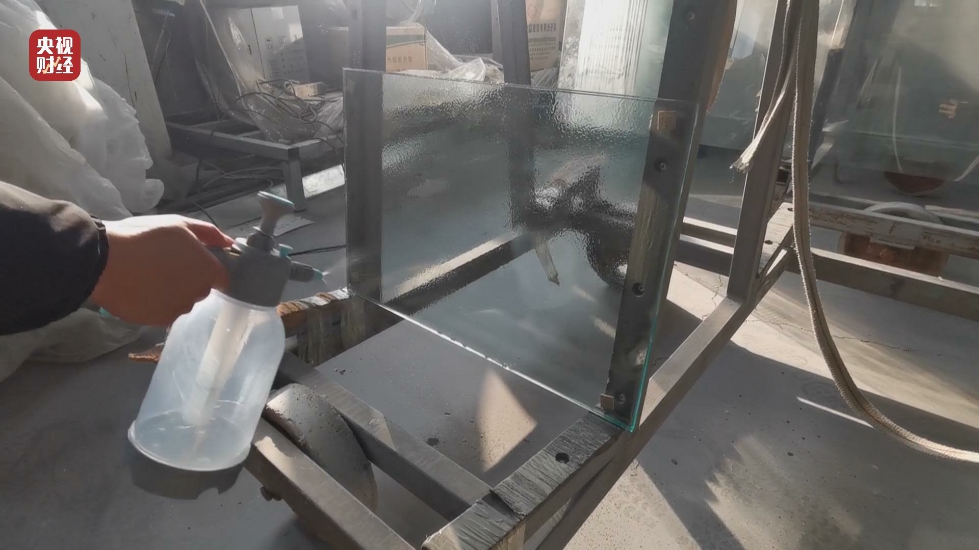 天津順玻玻璃科技有限公司工人:“防火液把它噴成霧狀的,噴一層,不要讓它多到滴下來,就是霧狀的?!?