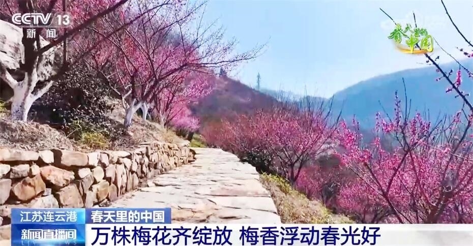 春日暖陽中,江蘇連云港花果山漫山遍野的梅花悄然綻放,紅梅花開似海、明媚驚艷,遠(yuǎn)看如云霞燦爛,近聞?dòng)杏浒迪恪;ü矫穲@經(jīng)過多年的栽植培育,有紅梅、美人梅、綠萼梅等梅樹2萬多株。