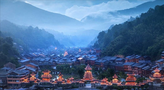 這里素有“侗鄉(xiāng)第一寨”的美譽(yù),2005年被《中國(guó)國(guó)家地理》評(píng)選為“中國(guó)最美的六大鄉(xiāng)村古鎮(zhèn)”之一。肇興侗寨四面環(huán)山,寨子建于山中盆地,兩條小溪匯成一條小河穿寨而過,去了才能真切地感受到深山里的世外桃源。