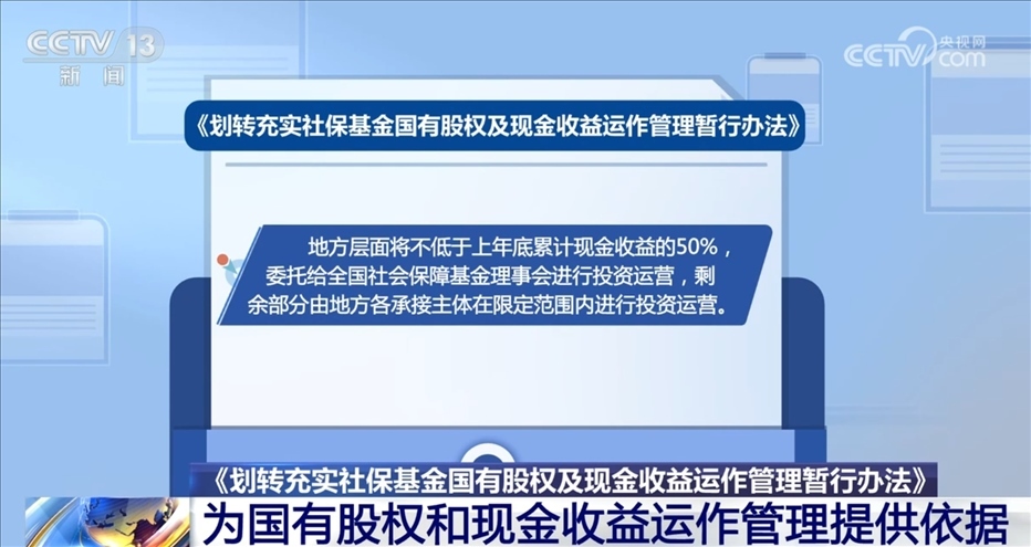 央視網(wǎng)消息:近日,財(cái)政部、人力資源社會(huì)保障部、國(guó)務(wù)院國(guó)資委三部門(mén)聯(lián)合印發(fā)了《劃轉(zhuǎn)充實(shí)社?;饑?guó)有股權(quán)及現(xiàn)金收益運(yùn)作管理暫行辦法》(以下簡(jiǎn)稱(chēng)《辦法》)。《辦法》為承接主體開(kāi)展國(guó)有股權(quán)和現(xiàn)金收益運(yùn)作管理提供了依據(jù)。