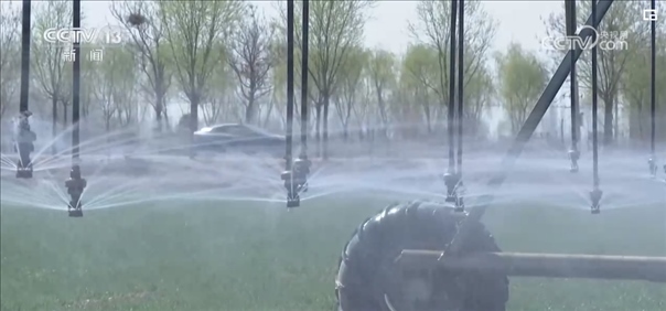 在50萬(wàn)畝集中連片高標(biāo)準(zhǔn)農(nóng)田示范區(qū),種糧大戶(hù)用上了雙翼式平移自行噴灌機(jī),根據(jù)墑情調(diào)整噴頭,來(lái)控制噴水量的大小,能節(jié)水三分之一左右。