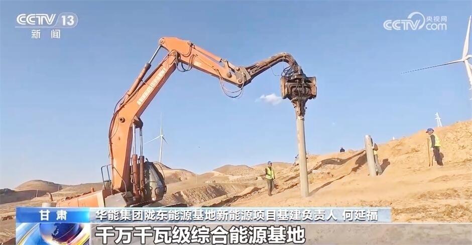 華能集團(tuán)隴東能源基地新能源項(xiàng)目基建負(fù)責(zé)人何延福稱:“我們按照‘風(fēng)光火儲(chǔ)輸一體化’開(kāi)發(fā),打造‘清潔主導(dǎo)、多能互補(bǔ)’的千萬(wàn)千瓦級(jí)綜合能源基地,規(guī)劃總裝機(jī)容量1000萬(wàn)千瓦。”