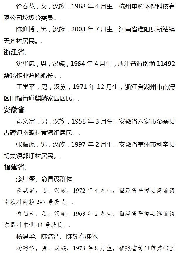 上榜勇士中,有舍棄價值幾十萬元蟹籠海中救人的沈華忠;有在深水中連救兩人的花甲老人程國利;有在斷橋處攔車避免更多事故發(fā)生的黃福林、唐群輝、王國梁群體;有阻止兇犯持刀行兇的醫(yī)生單國際、韋仲謀;有從15米高的橋上跳水救人的外賣小哥陳迎博……更有在水中多次救人英勇犧牲的19歲小伙李政;為搶險救火獻(xiàn)出生命的鄧璞、項姚興、吳祥奇;有進(jìn)入沼氣井救人不幸遇難的張生賢……勇士們的事跡震撼人心、催人奮進(jìn),他們不怕困難和艱險,沖鋒在前、見義勇為,用實際行動傳承和弘揚(yáng)了中華民族傳統(tǒng)美德,踐行了社會主義核心價值觀。