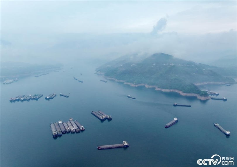 2024年4月10日,湖北宜昌,一場春雨過后,秭歸縣峽江兩岸煙雨朦朧,船行其間,宛如一幅水墨畫卷。