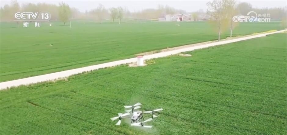 王志國表示,目前,小麥病蟲害90%以上用植保無人機來防治,一臺植保無人機一天可防治1000畝地,能頂替100個勞動力,而且不重噴、不漏噴,非常精準。