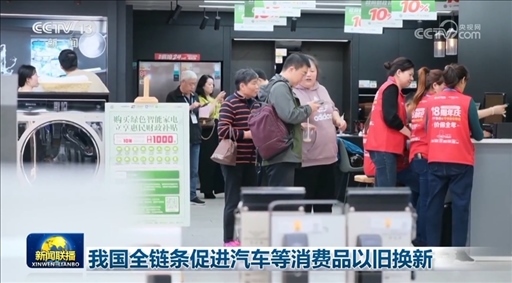 央視網(wǎng)消息(新聞聯(lián)播):記者從商務(wù)部了解到,近日,14部門聯(lián)合發(fā)布《推動消費(fèi)品以舊換新行動方案》,部署組織在全國范圍內(nèi)開展汽車、家電、家裝廚衛(wèi)等消費(fèi)品以舊換新。