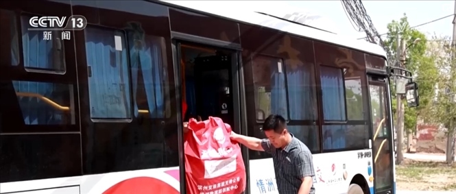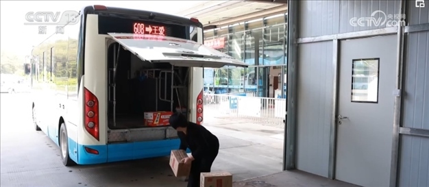 在專門定制的客貨郵公交車上,除了快遞包裹,還有一些團(tuán)購的生活物資。司機(jī)介紹,因?yàn)榇謇锢先司佣?,到?zhèn)上買東西不方便,手機(jī)團(tuán)購生活物資后,公交車就會一起帶到各村的集士驛站。