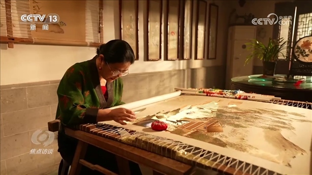 盧建英:“當(dāng)時我在繡一幅《桃花太平鳥圖》,習(xí)近平總書記走到了我的繃架前。他說你好,很親切,很和藹,看得非常仔細。他說中華文化的傳承力有多強,通過這個蘇繡可以看出來,像這樣的功夫充分體現(xiàn)出中國人的韌性、耐心和定力,這是中華民族精神的一部分,能得到總書記的認可,真的是倍感榮耀?!?/p>
