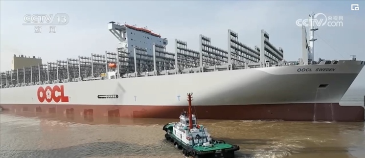 央視網(wǎng)消息:5月7日,又一艘全球最大裝箱量級的集裝箱船在海事部門的護(hù)航下,從長江江蘇南通段出江試航。此次,試航集裝箱船長399.99米、寬61.3米,滿載時相當(dāng)于240多列火車的裝載量。