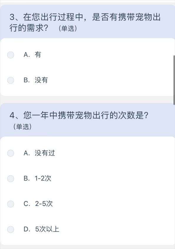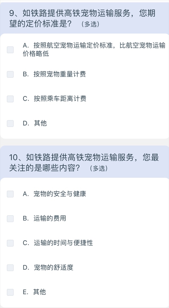 問卷涉及寵物運輸服務(wù)定價、非養(yǎng)寵人士建議等