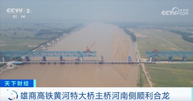 央視網(wǎng)消息:雄商高鐵是京雄商高鐵的一段,連接河北省雄安新區(qū)和河南商丘。5月18日,雄商高鐵黃河特大橋河南側(cè)的鋼桁梁架設(shè)施工全部完成,這標(biāo)志著主橋河南側(cè)已經(jīng)順利合龍。截至目前,全橋鋼桁梁架設(shè)的進(jìn)度超過了87%,預(yù)計(jì)主橋全橋7月份合龍。
