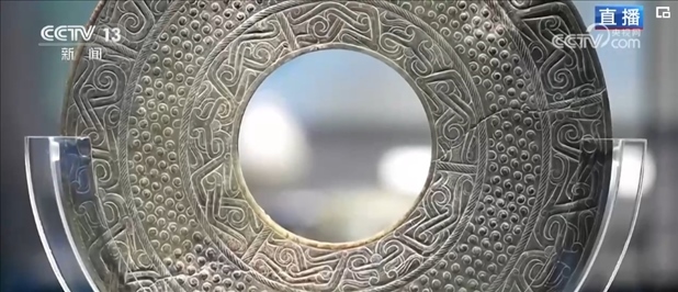 通過8K超高清攝像機可以清晰看到,鎮(zhèn)館之寶魯國大玉璧的紋飾區(qū)域多達3層,內(nèi)圈和外圈是象征權(quán)力的龍紋,中間這一圈是象征五谷豐登的谷紋。玉璧是祭天的禮器,作為戰(zhàn)國時期形制最大的玉璧,它充分展現(xiàn)了魯國對禮制和農(nóng)業(yè)的重視。