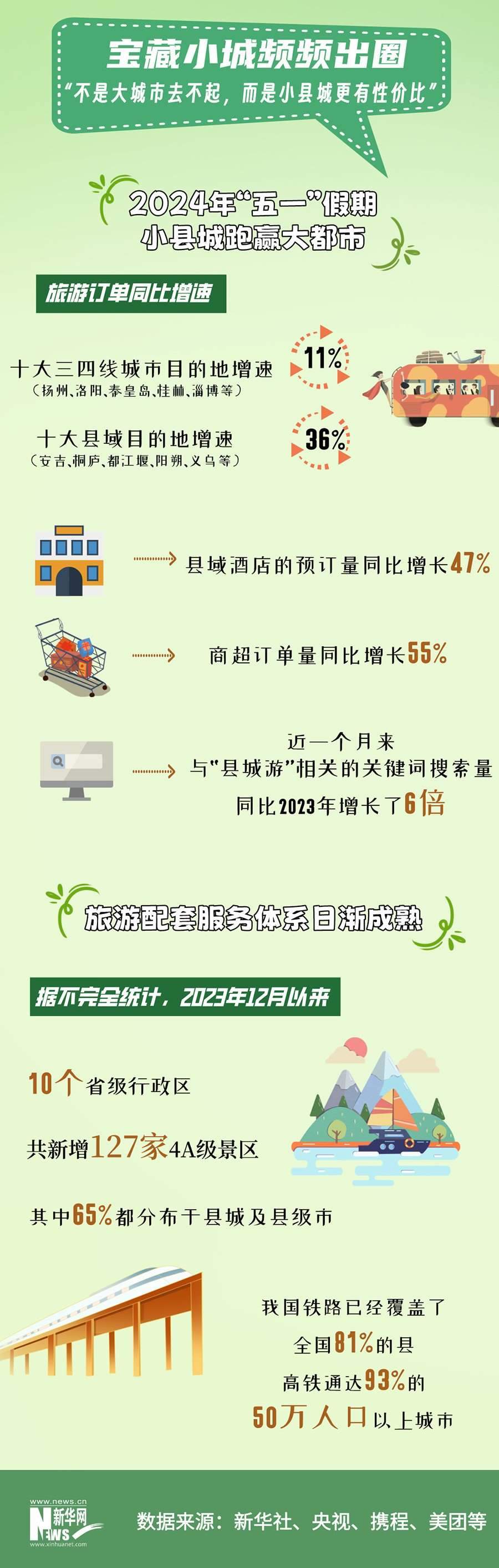 小城故事多。今年“五一”假期,熱門旅游城市和景點(diǎn)雖然依舊“人從眾”,但縣域旅游也展現(xiàn)出了極大的活力。文化和旅游部數(shù)據(jù)中心測(cè)算,縣城正在成為出游“新寵”,文旅下沉趨勢(shì)明顯。